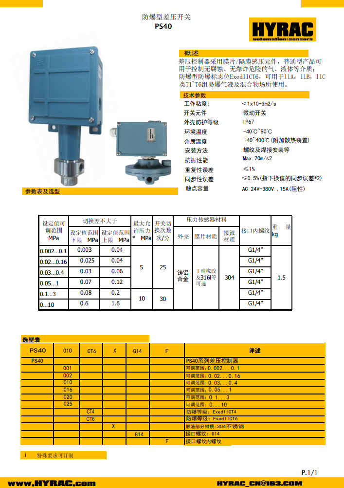 可調(diào)式差壓開關(guān)PS40